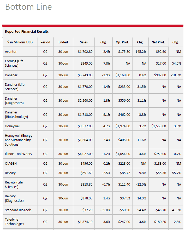 - Life sciences instrumentation and consumables, including NGS and cell analysis